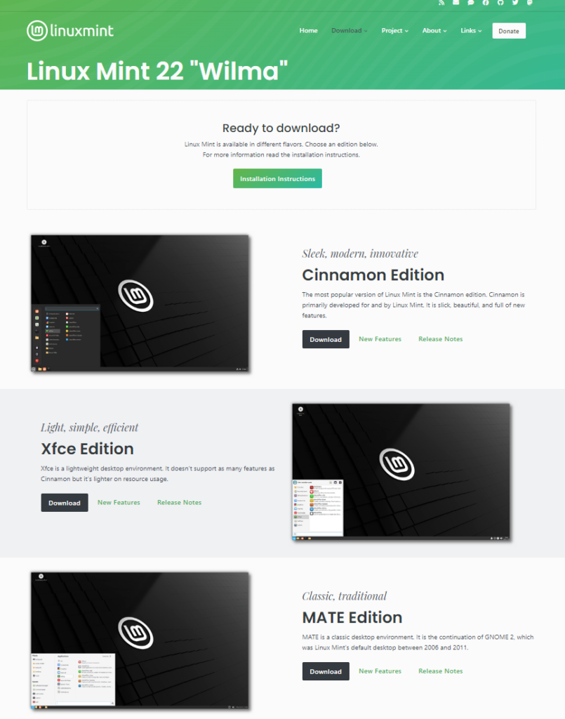 このうち「Xfce Edition」が一番軽量です。しかし、コマンドを使う場面が出てきてしまうこともあるため、「Cinnamon Edition」がオススメです。