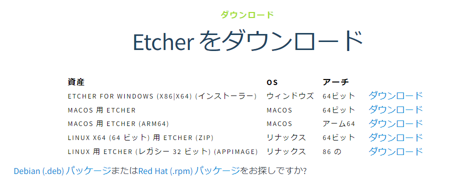 2,先ほどダウンロードしておいた「BalenaEtcher」を起動。