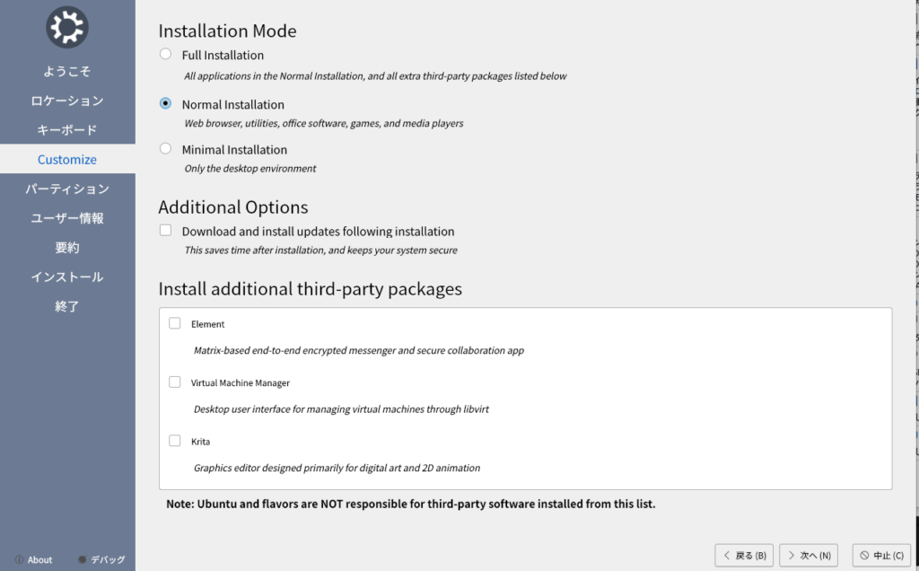インストール用のISOファイルはhttps://kubuntu.org/getkubuntu/ からダウンロード。