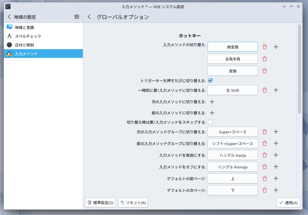 端末:Konsoleでコマンドであれば、「sudo apt update」と入力してEnterしてソフトウェアリストのアップデートをした上で、「sudo apt install fcitx5-anthy fcitx5-mozc」+Enterで、一発でインストールができます。