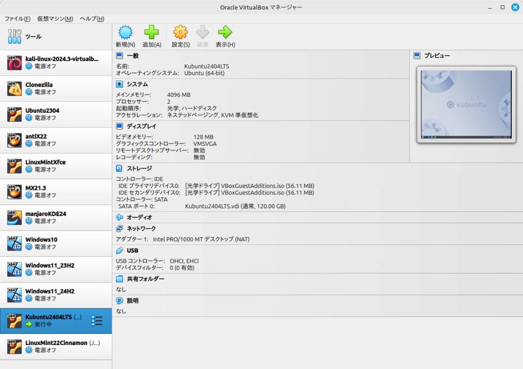今回試してみたのはKubuntu 24.04。VirtualBoxによる仮想PC上です。ホストPCはLinuxMint22 Cinnamonです。