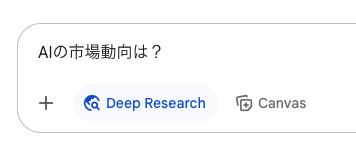 - Geminiの画面で「Deep Research」を選択します。