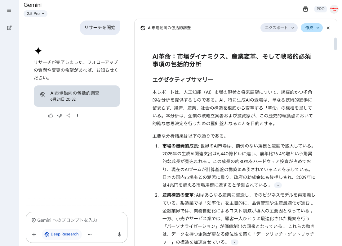 Gemini Deep Researchは、これまで多くの時間を費やしてきた情報収集とレポート作成のプロセスを劇的に変えるものとなっています。
