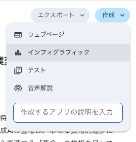 これをすべて読むのは大変なものとなりますが、「作成」>「インフォグラフィック」で視覚的にわかりやすくすることができます。