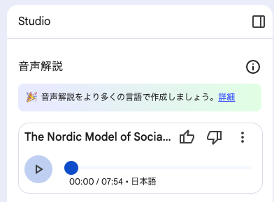 読み込まれたソースを元にポッドキャストの番組風に2人の男女の掛け合いで、5分〜10分で解説してくれます。