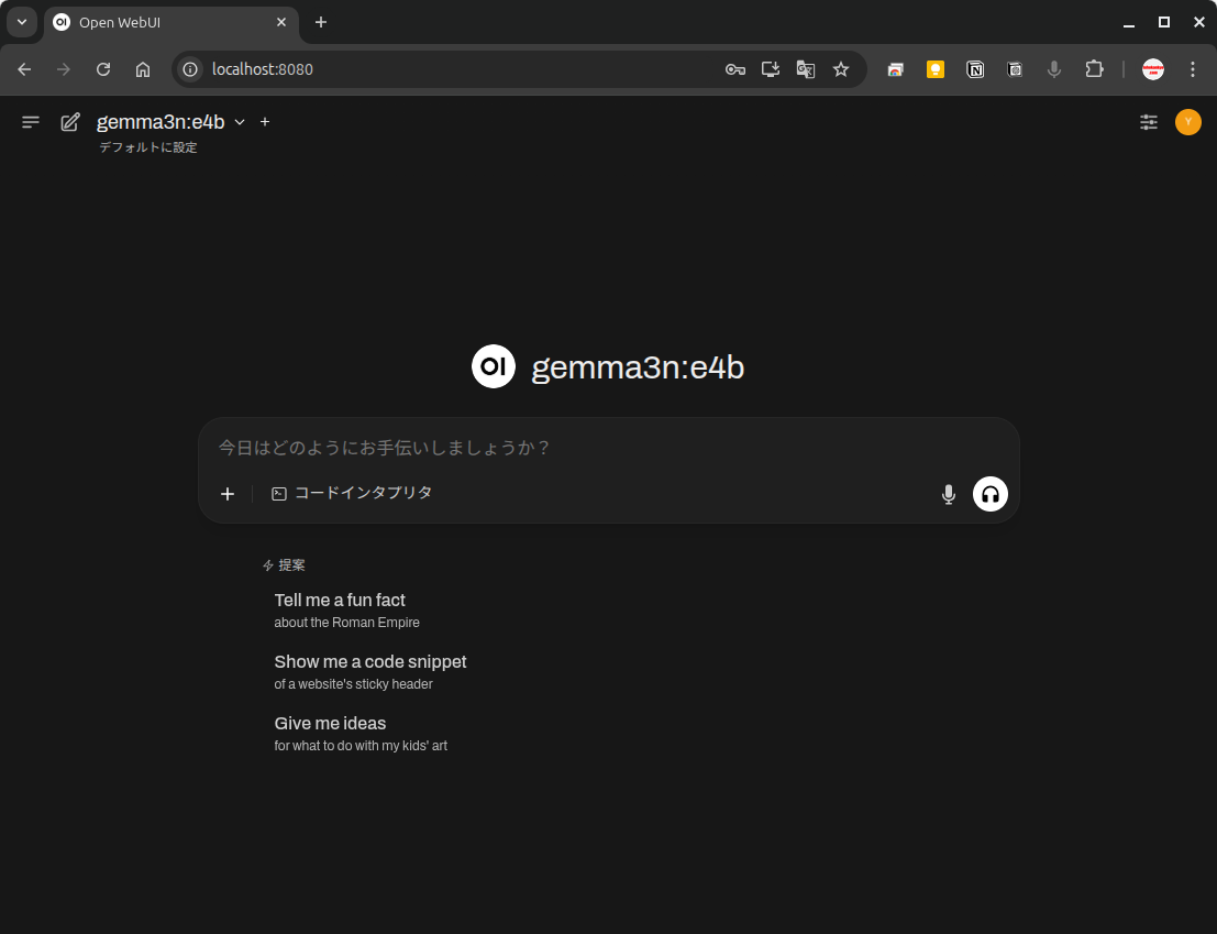 以上の手順で無事に表示され、ローカルAIが利用可能となりました。